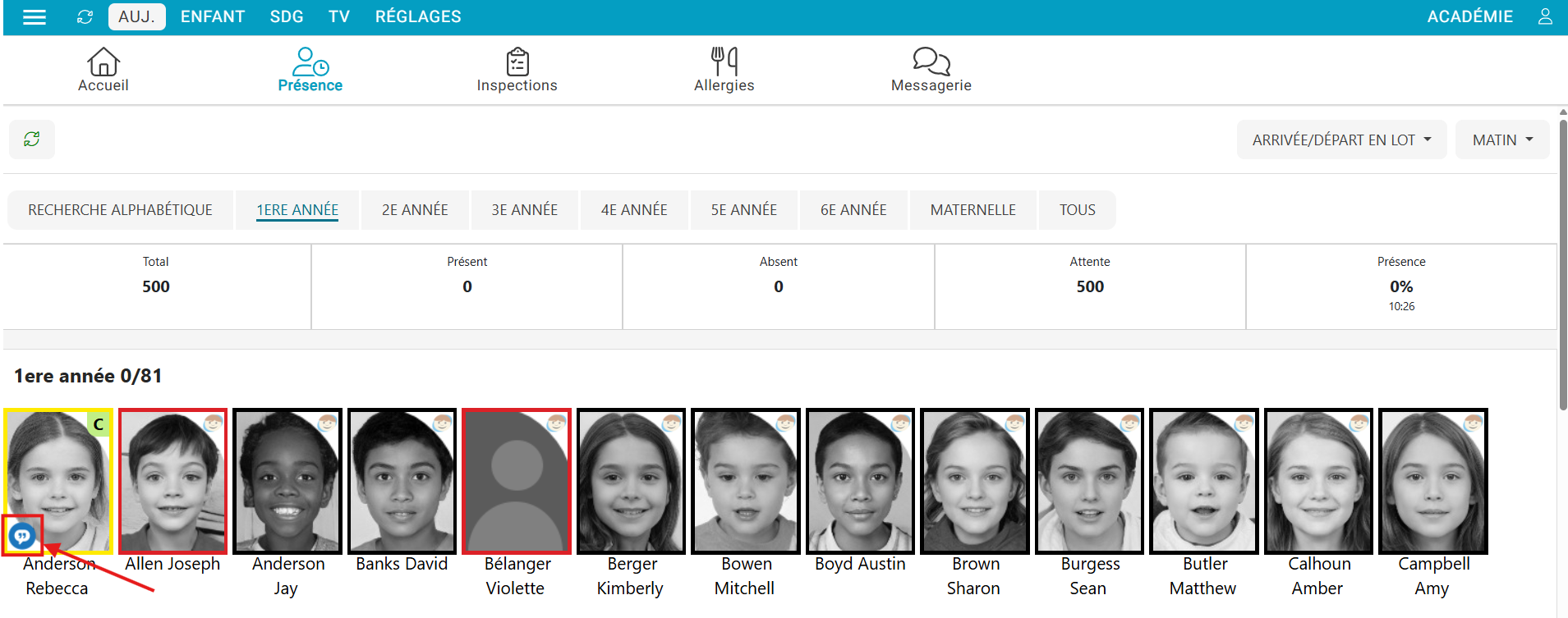 - Cliquer sur la photo de l'enfant
