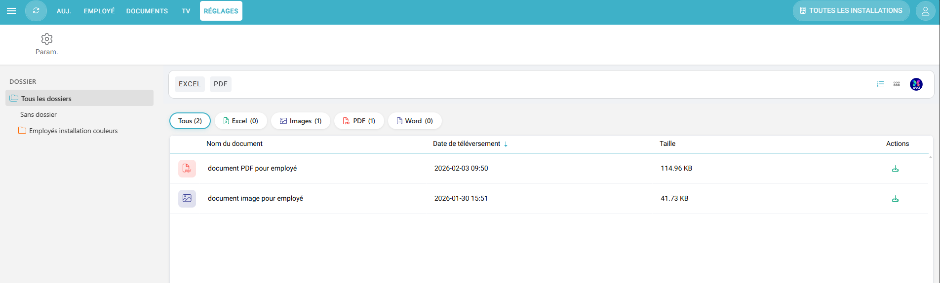 En tant qu’employé, vous avez automatiquement accès aux documents partagés avec votre type d’utilisateur, ainsi qu’à ceux liés aux installations auxquelles vous êtes associé. Vous y retrouverez facilement toute l’information qui vous concerne, rassemblée au même endroit.