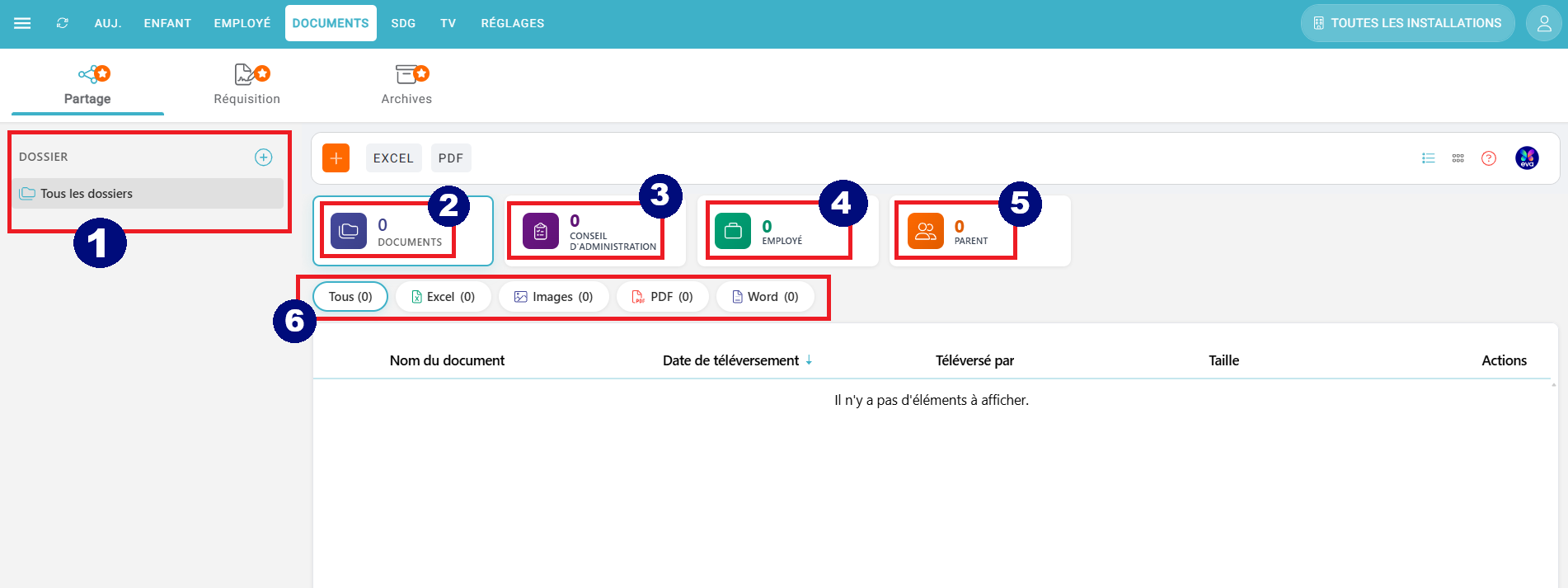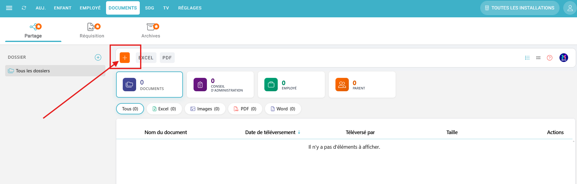 1. La section "Dossier" vous permet de classer vos documents par dossiers. Il vous est donc possible, à l'aide de l'icône (+), d'ajouter des dossiers selon votre besoin.