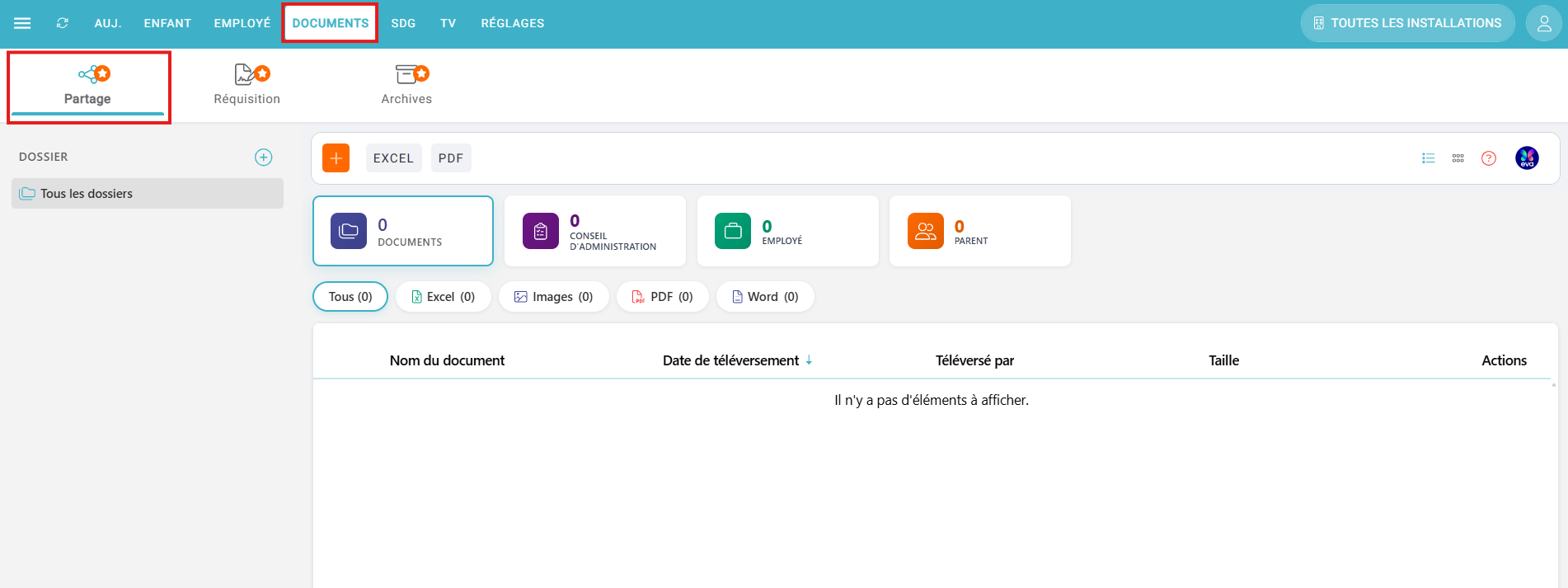 Une fois les dossiers créés, il vous sera possible d'y déposer vos documents (voir sections suivantes).