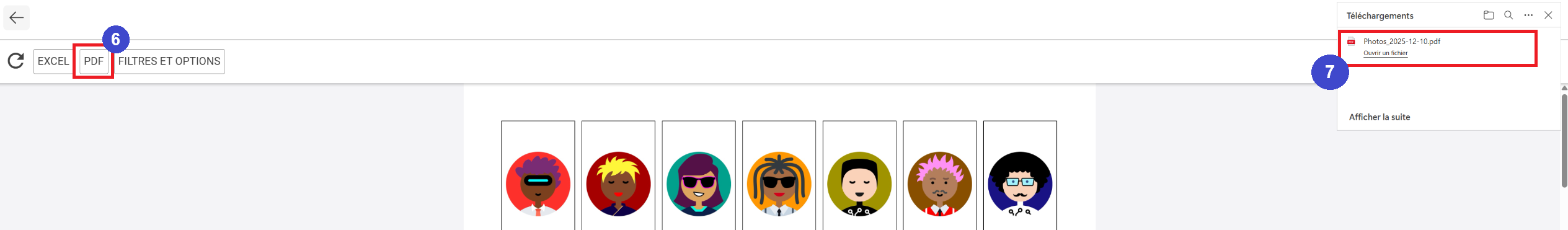 6 - Lorsque vous avez choisi les filtres et options désirés, cliquez sur PDF