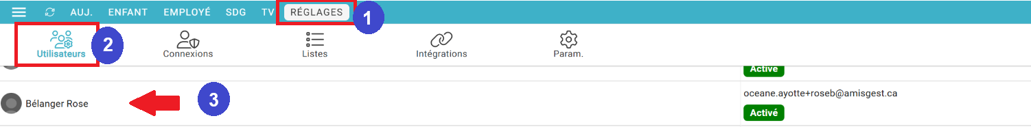 4- Une fois dans le compte utilisateur concerné, sélectionner l'onglet « Notifications par courriel »;