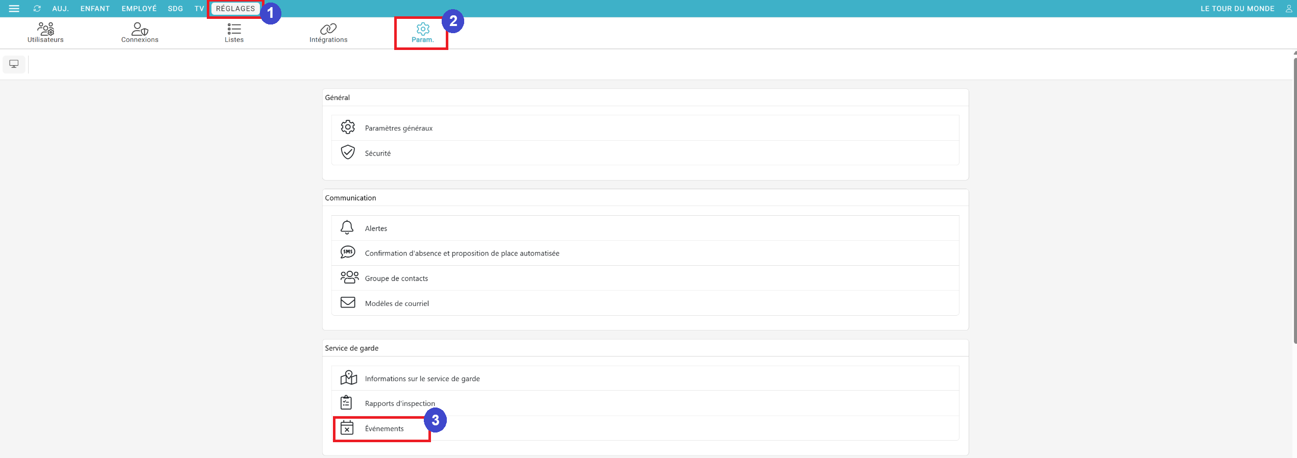 Sélectionner le filtre « ENFANT » si vous souhaitez ajouter un événement aux enfants;