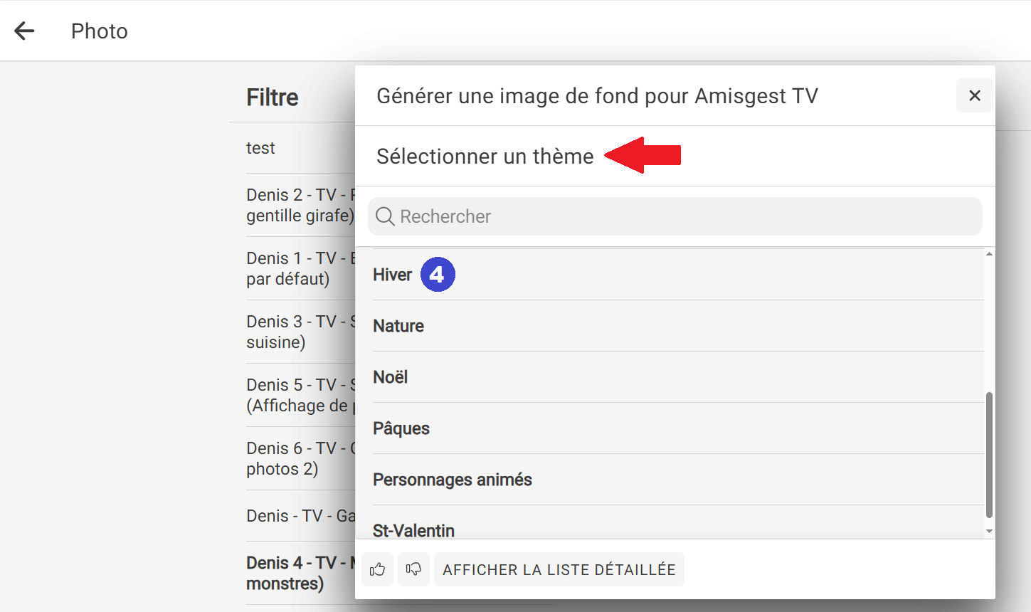thème" de l'image de fond que vous souhaitez afficher sur Amisgest TV.