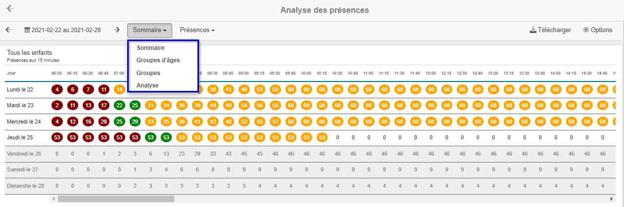 6. Vous avez accès aux sommaires des présences par tranches de 15 min