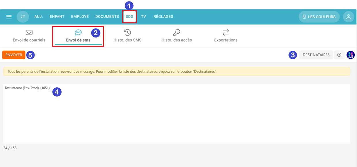 NOTE : Le nom de votre service de garde apparaît automatiquement. Il est important de le conserver pour que les parents sachent que le SMS vient de votre milieu.