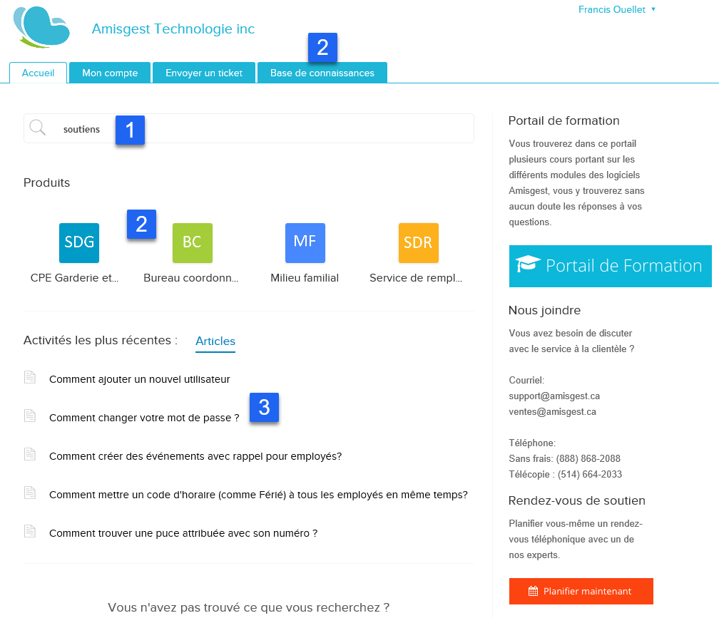 3 Méthodes pour faire vos demandes de support par ordre de simplicité et d'efficience Via le portail de support dans votre Amisgest ou à https://support.amisgest.ca Par courriel à support@amisgest.ca ou directement au bon département: Amisgest ...