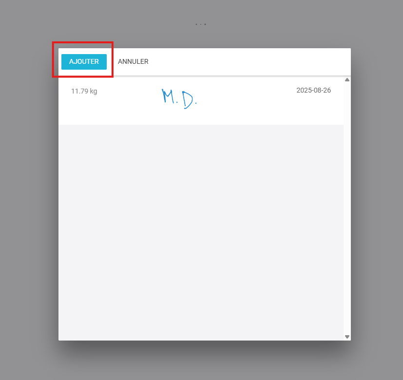 4. En cliquant sur le bouton, vous aurez une fenêtre contextuelle au centre de l'écran vous permettant d'ajouter un poids :