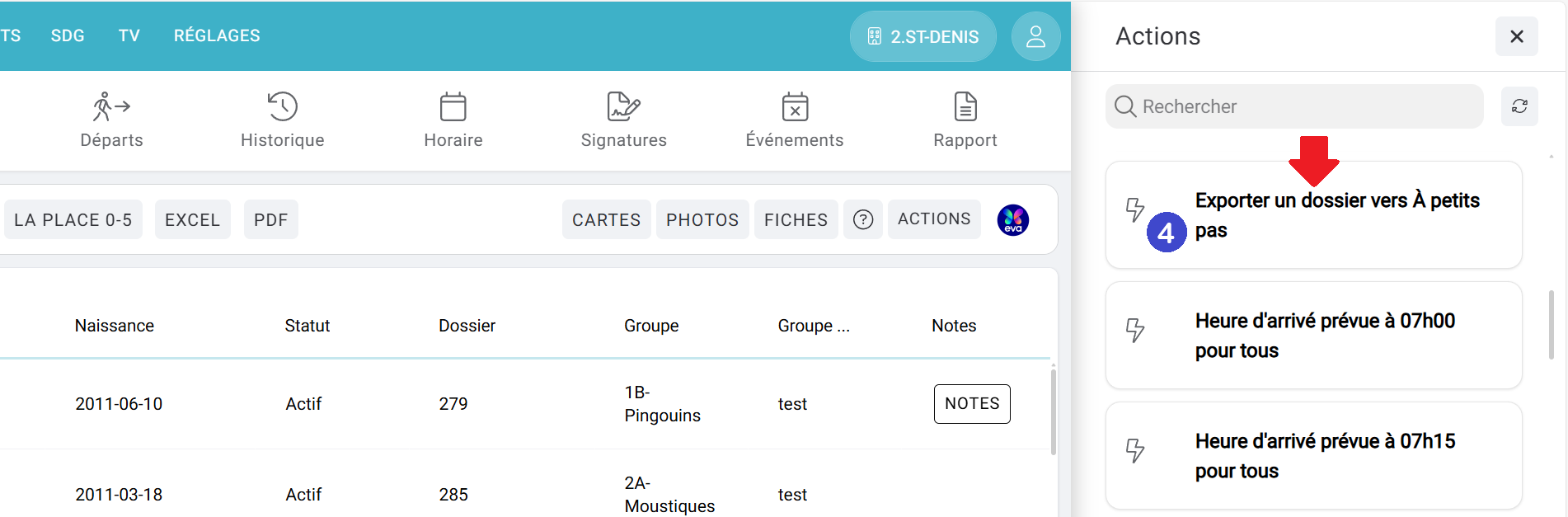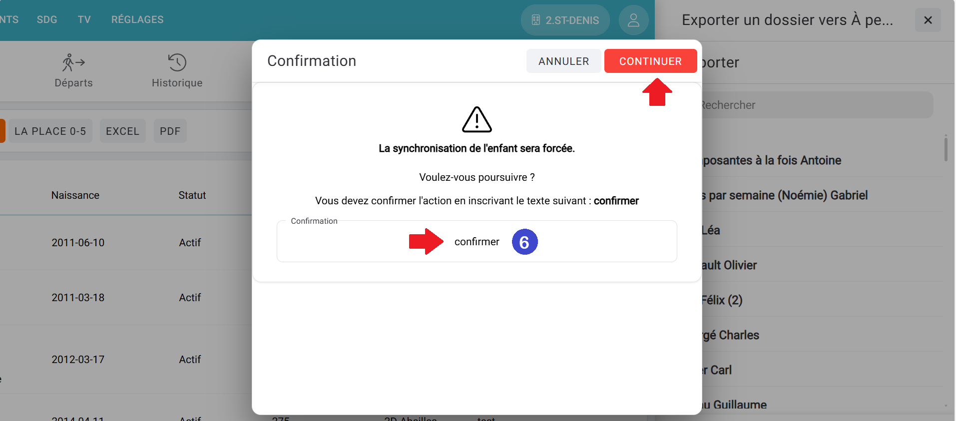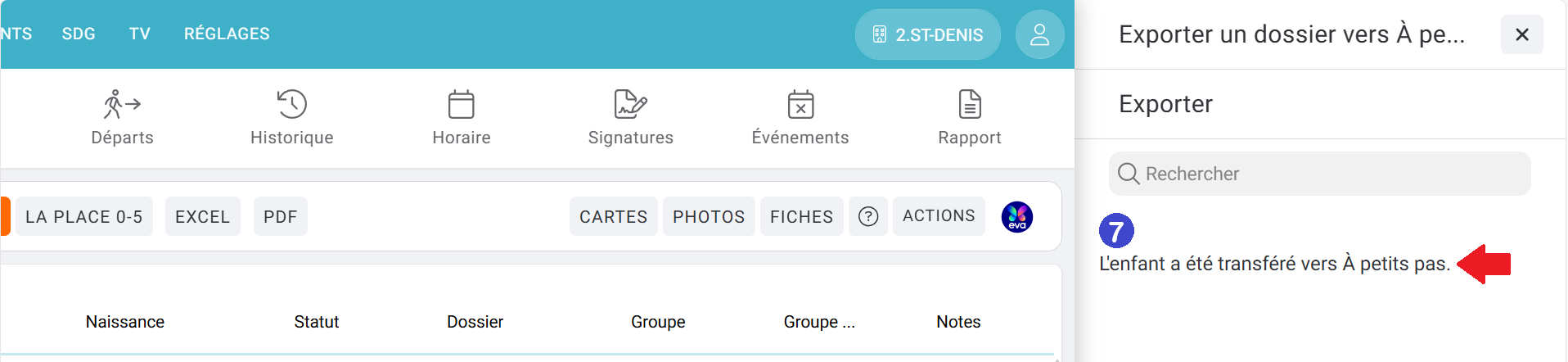 Cela va forcer l'exportation du dossier de l'enfant concerné dans À Petits Pas.