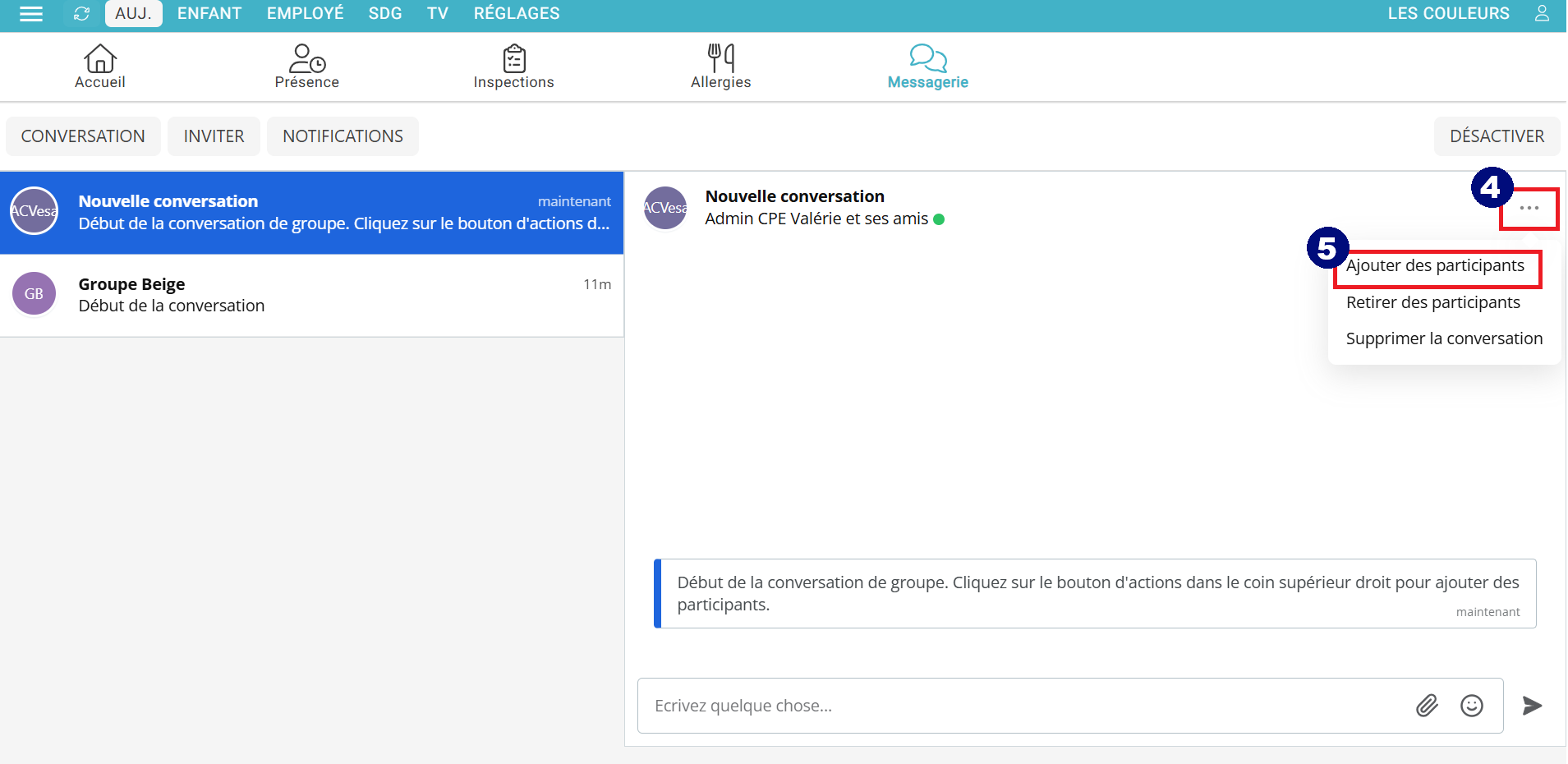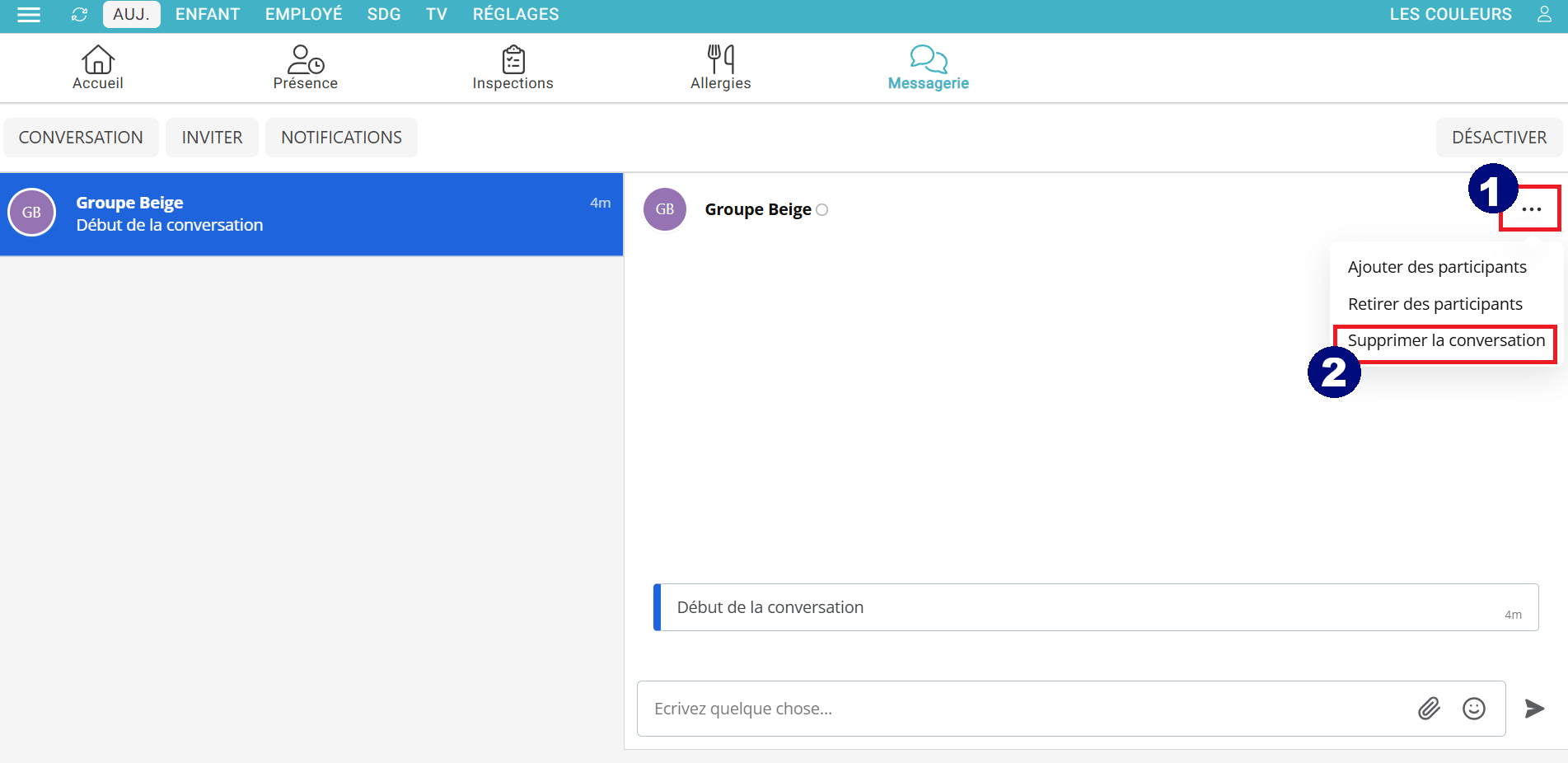 En tout temps, il est possible pour vous de supprimer le nom d'un participant dans le groupe ou de supprimer la conversation du groupe.