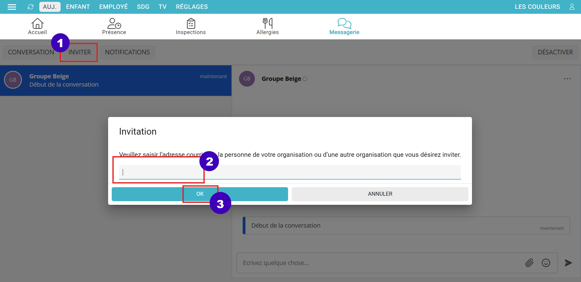 2- Saisir l'adresse courriel de la personne de votre organisation ou d'une autre organisation que vous voulez inviter.