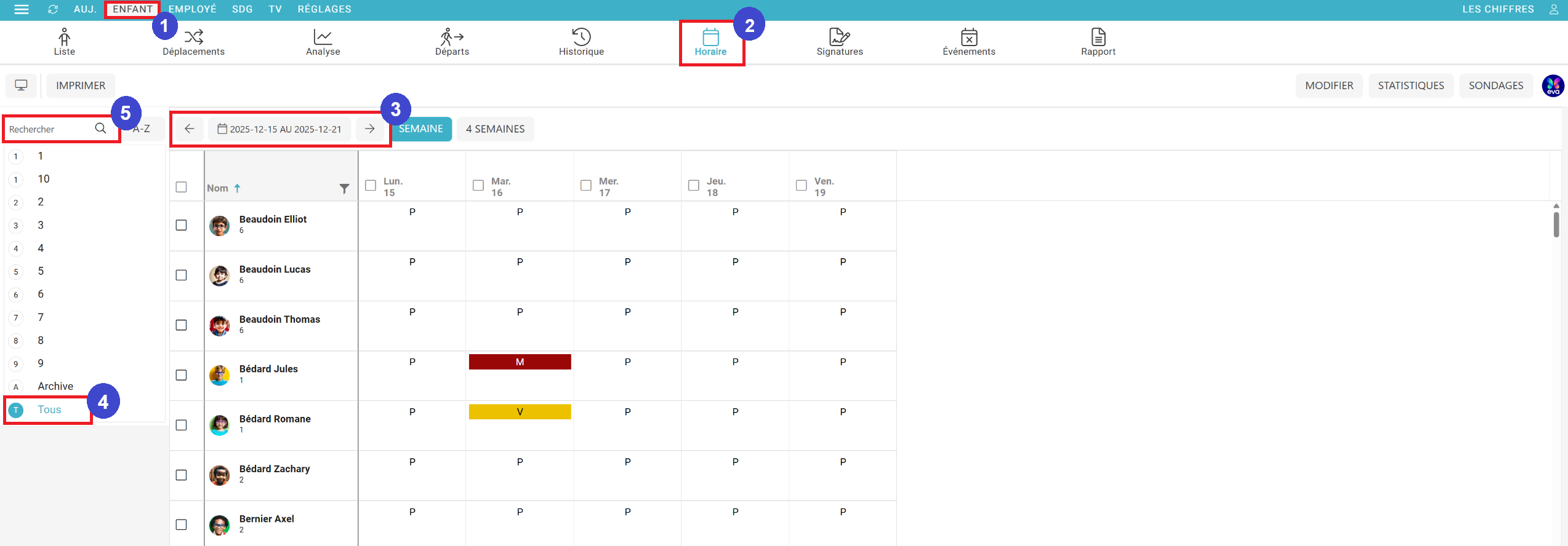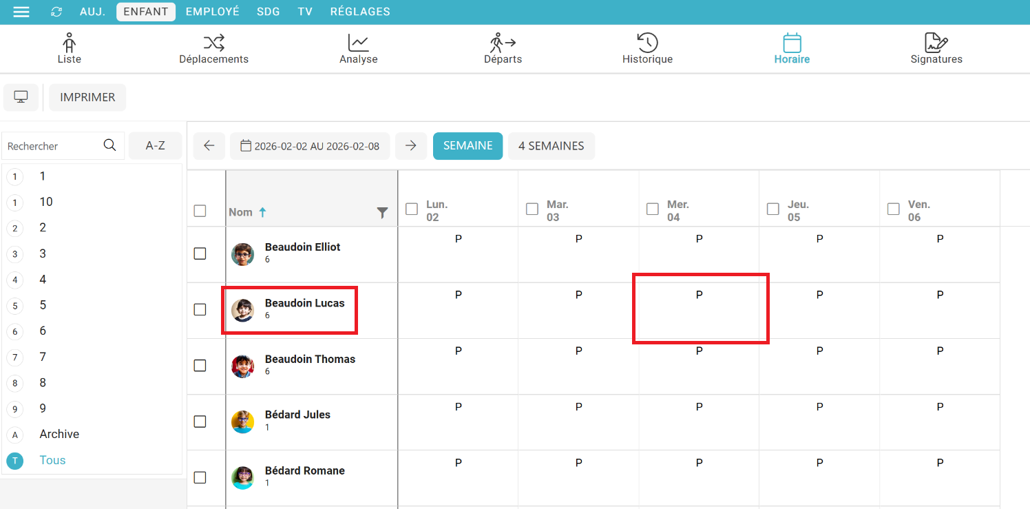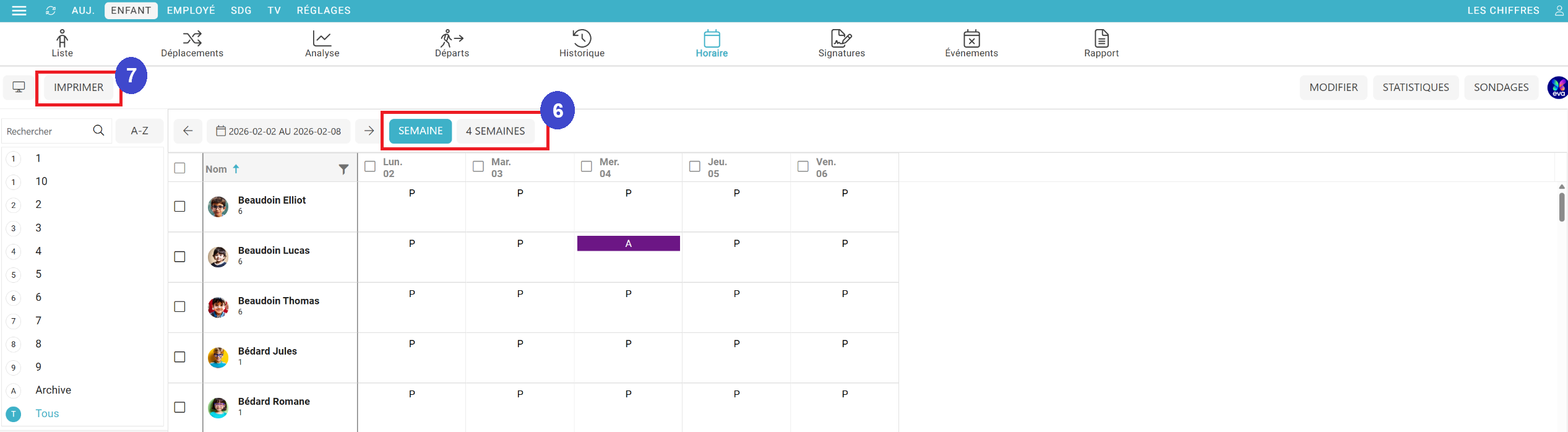7.1) Vous pouvez imprimer l'horaire des enfants.