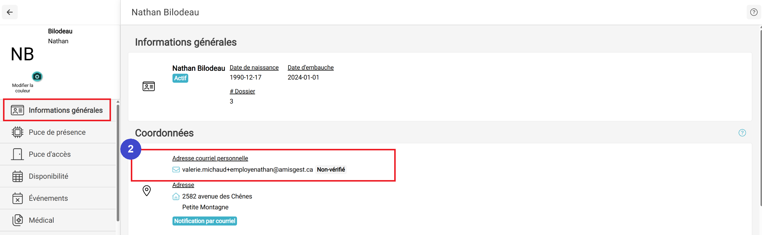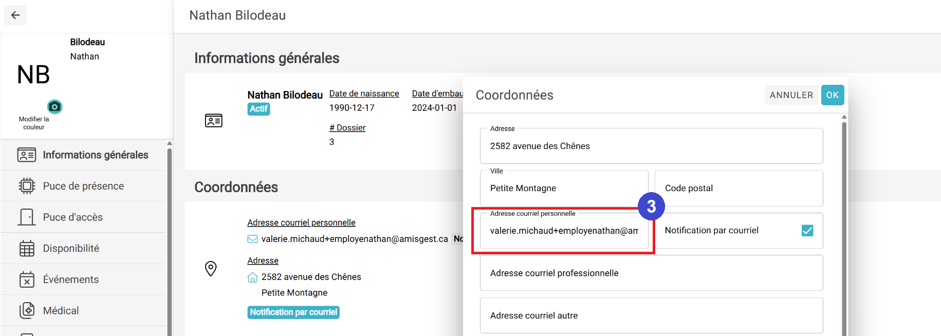 Tout d'abord il faut s'assurer qu'il y a une adresse courriel personnelle dans le dossier de l'employé.