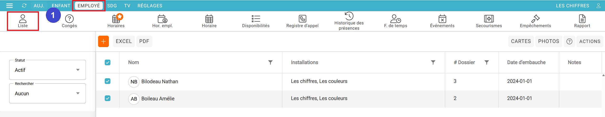 1 - Dans SDG+, sélectionner le dossier employé dans le menu « Employé - Liste ».