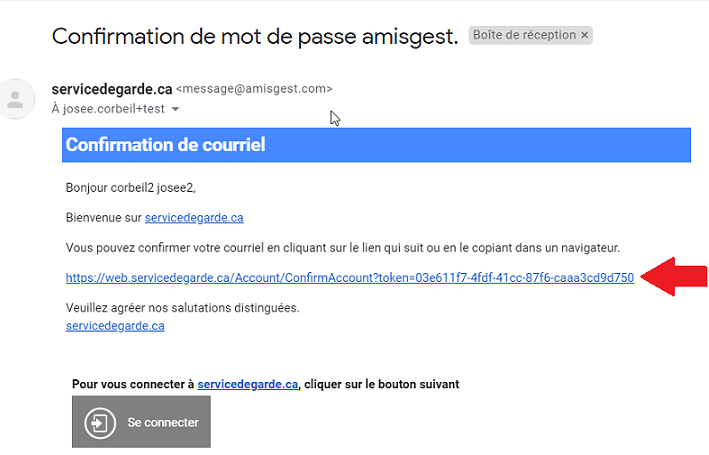 Cliquer sur le lien d’activation dans le courriel pour activer votre compte.