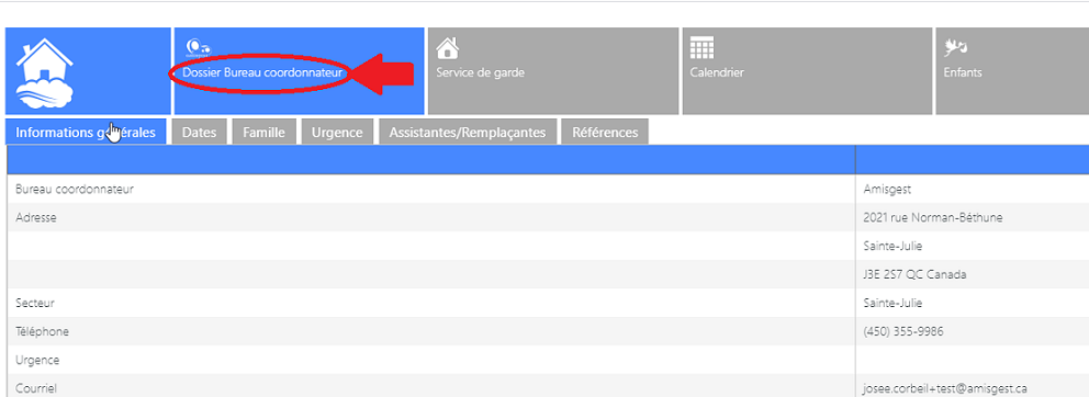 3 - Une fois connecté(e) dans votre compte, cliquer sur l’onglet Dossier Bureau Coordonnateur pour voir toutes les informations de votre dossier à votre BC.