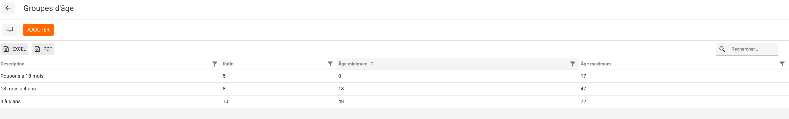 3) Puis, sur "Groupes d'Âge" afin de vérifier si les ratios sont bons