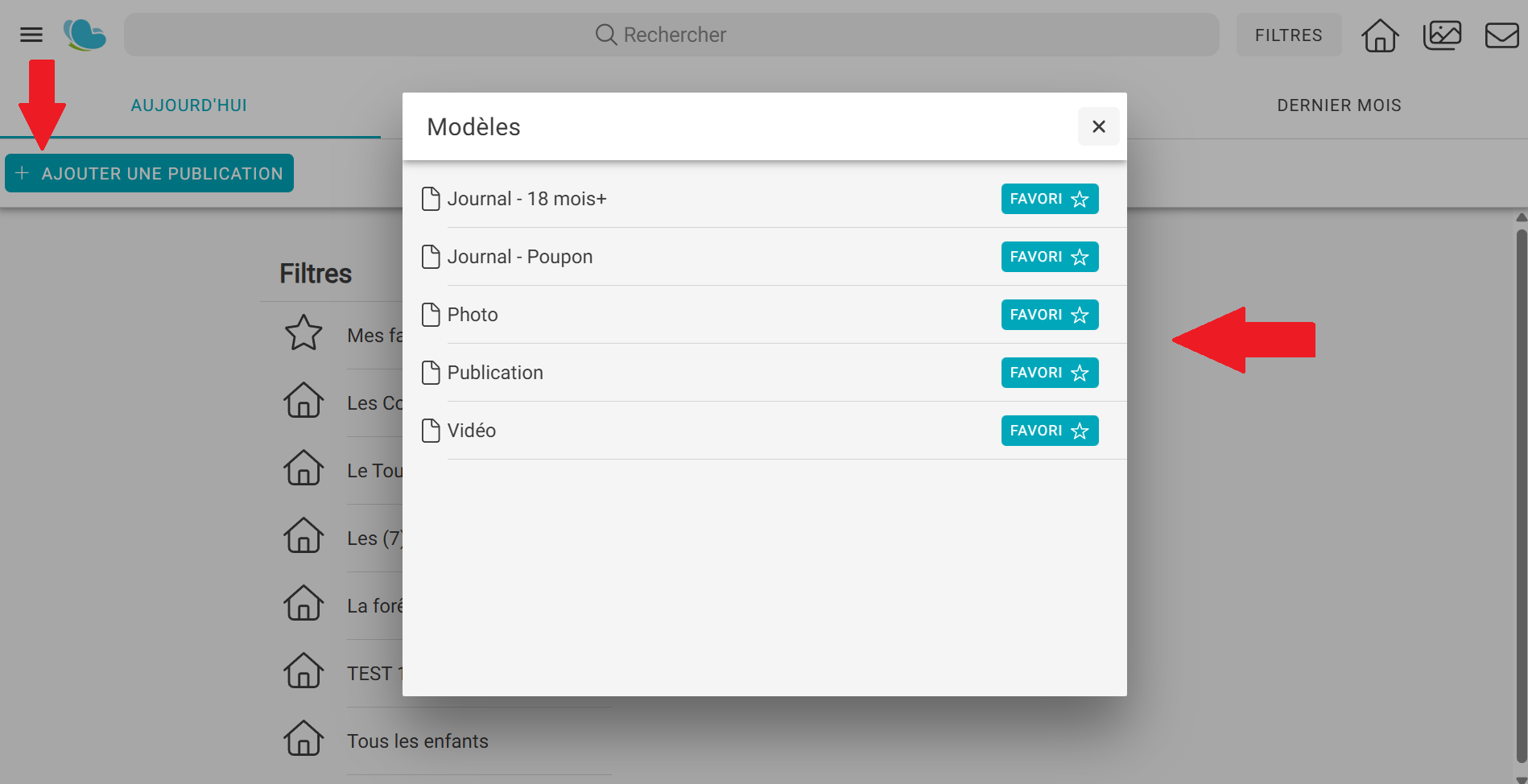 Cliquer sur le bouton "+Ajouter une publication" et sélectionner le type de publication que vous souhaitez envoyer au parent.