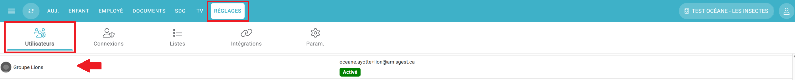 1- Rendez-vous dans le menu Réglages, puis l'onglet Utilisateurs