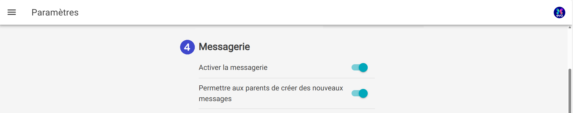 Si vous souhaitez activer la fonctionnalité, vous devez activer le bouton "Activer la messagerie".