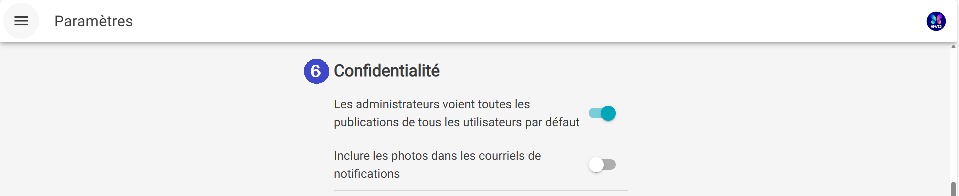 - Vous pouvez choisir si vous souhaitez ou pas inclure les photos dans les courriels de notifications envoyés aux parents.