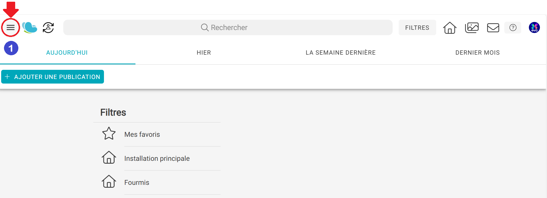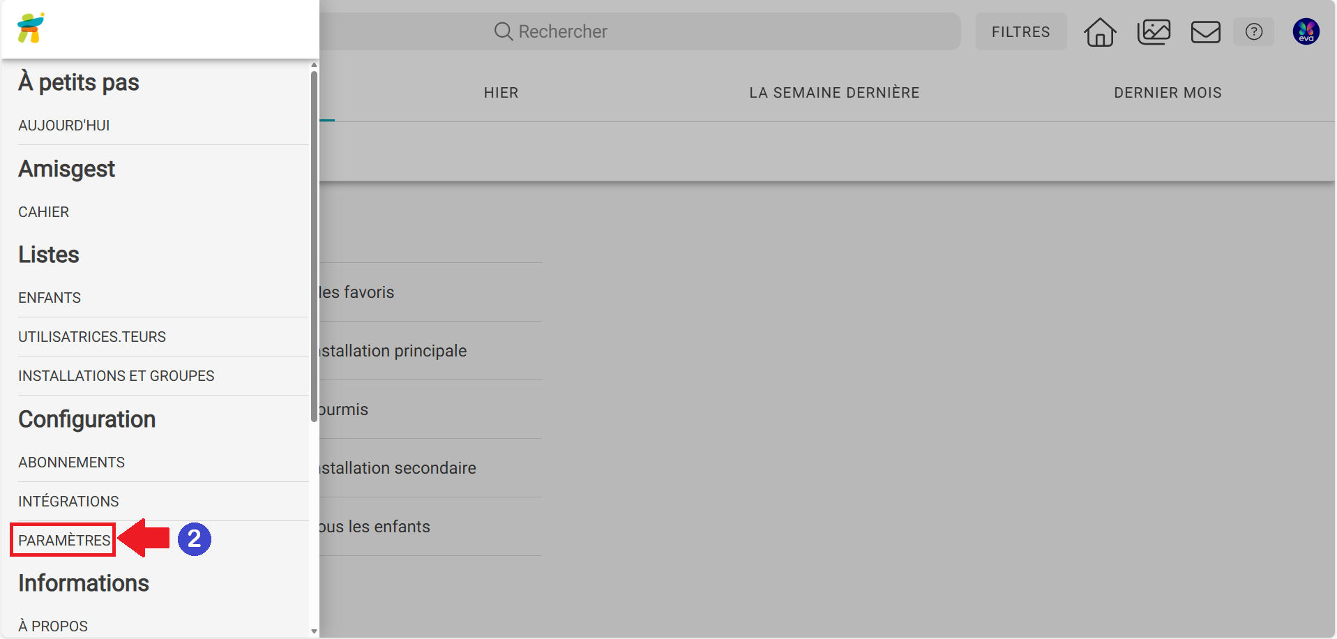 compte administrateur sur l'application À Petits Pas, cliquez sur les 3 petites lignes à gauche.