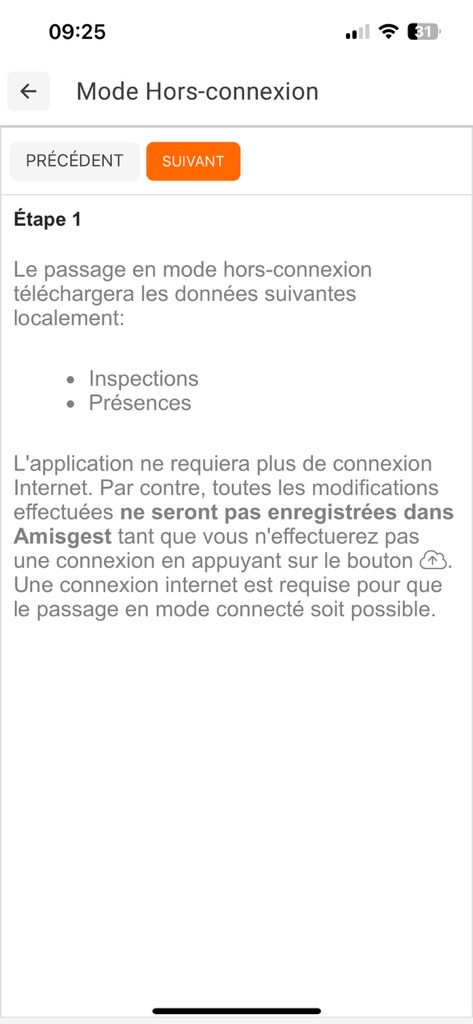 Afin de pouvoir compléter les présences ou remplir un rapport d'inspection de la cour dans un endroit n'ayant pas accès à une connexion sans fil (wi-fi), vous devez télécharger localement les données dans l'appareil mobile utilisé (tablette par exemple) en passant en mode "Hors-Connexion".