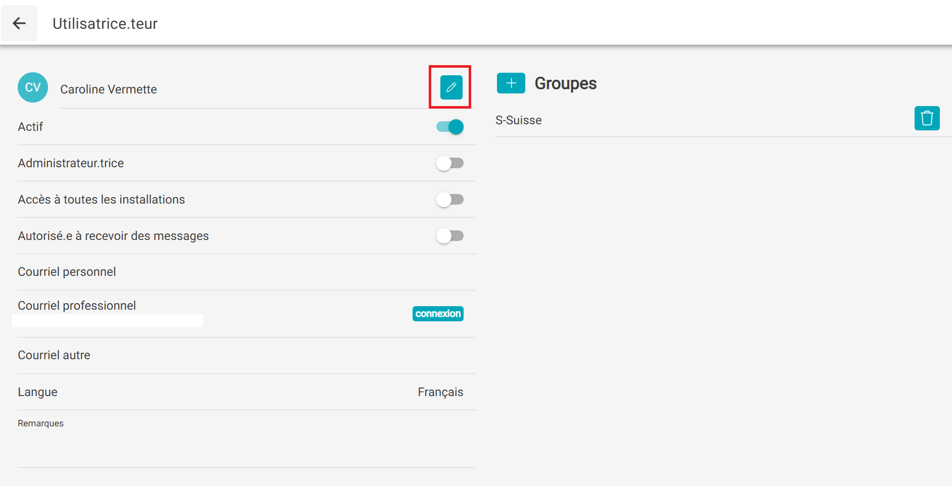 - Cliquer sur le bouton poussoir pour désactiver son compte et ne plus lui permettre de se connecter dans l'application À petits pas.